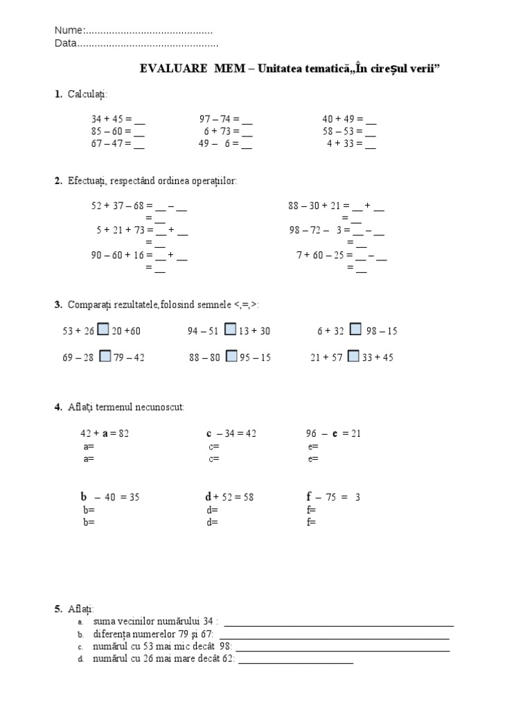 Test Matematica Clasa 1. Matematica cl.1 teste de evaluare sumativa. Pavel 9 septembrie 2019alte materiale. 63, 72 ,85, 25, 56 2. Subliniai cifra unitatilor la urmatoarele numere: Ministerul educaţiei al republici i moldova ludmila ursu mie lupu lulia iasinschi pe la/truc ediţie revizuită ?