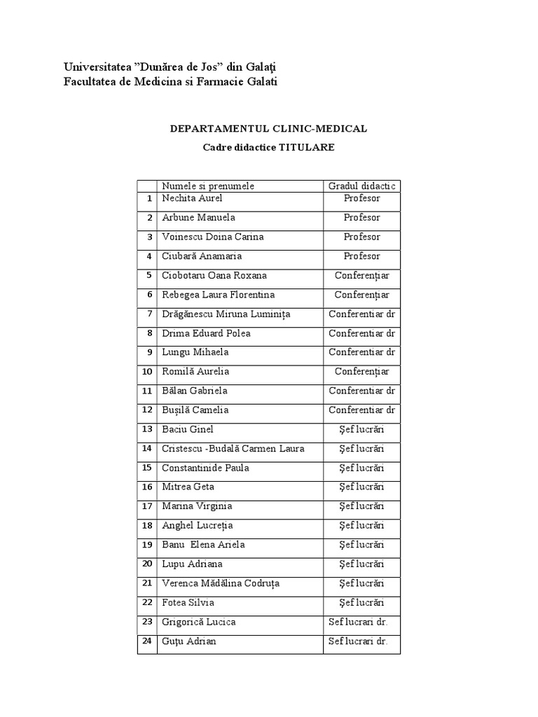 Universitetas galacis, galati, galacis, rumunija facultatea de medicina si farmacie adresas.