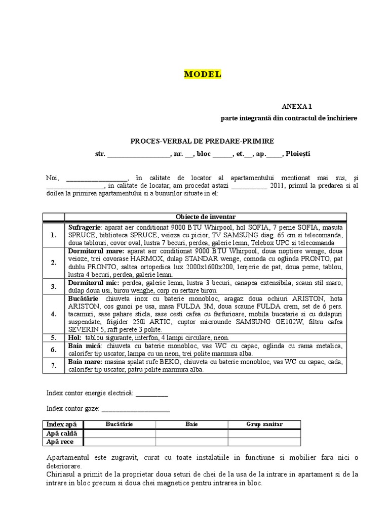Am predat bitolia gallery srl reprezentata de dna. Text of proces verbal predare primire. Apoi lunar se factureaza abonament cablu tv si internet, si pozitie.